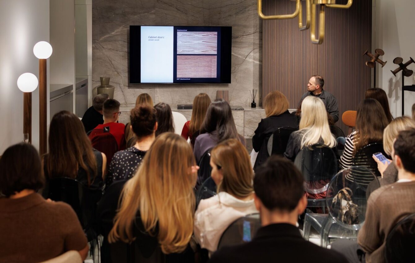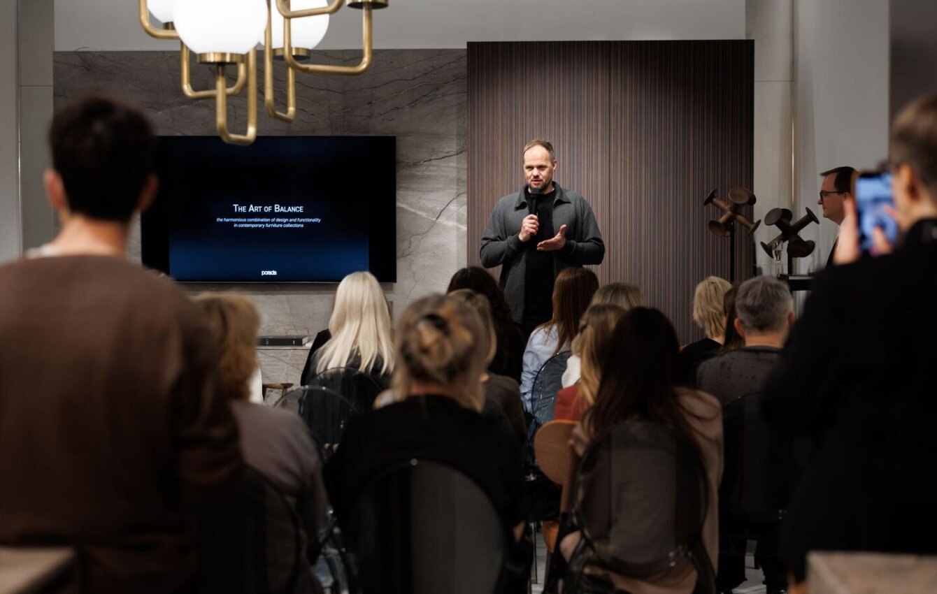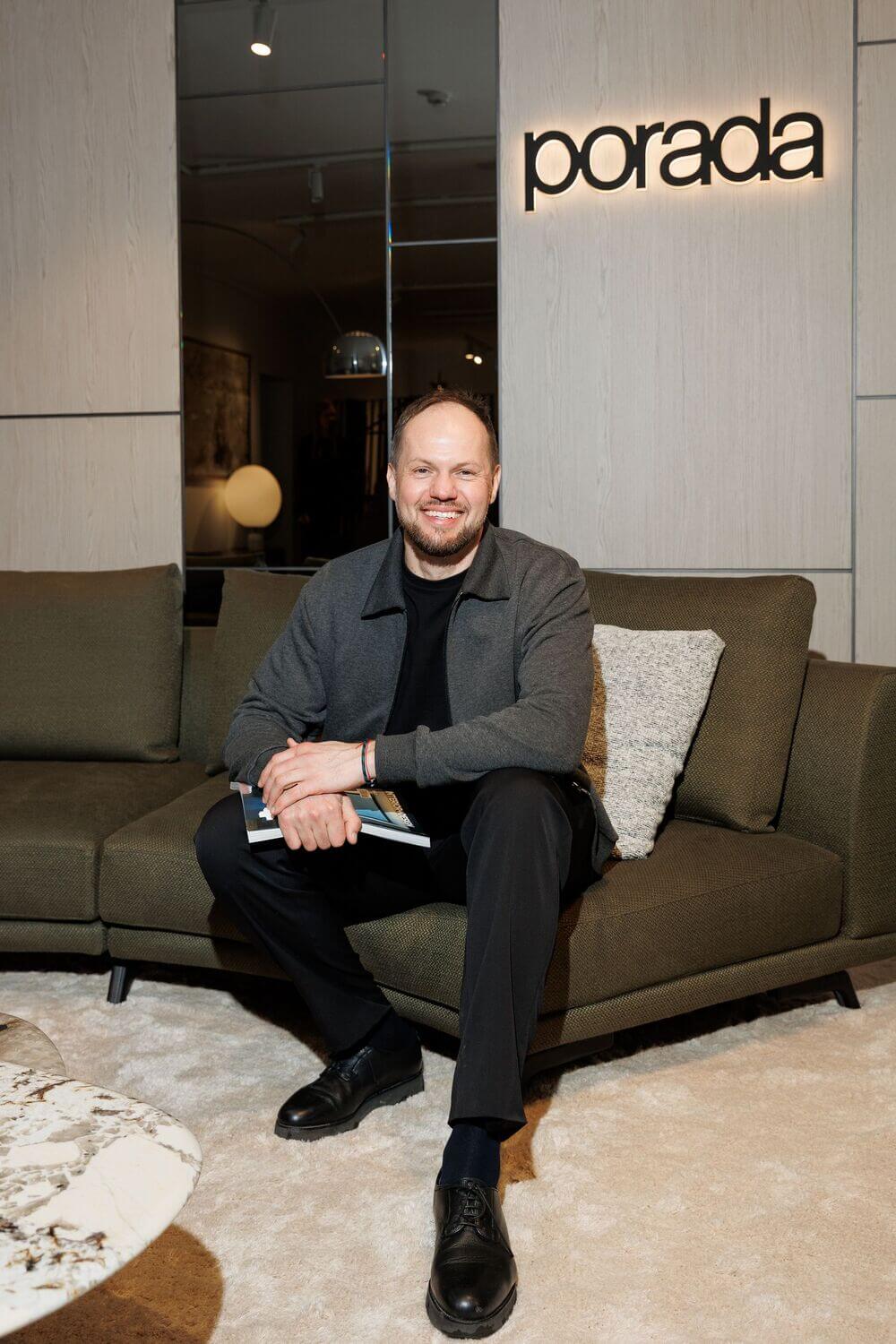 Гость мероприятия, итальянский Дизайнер Карло Баллабио, рассказал о своей роли в жизни бренда и поделился опытом создания мебели Porada. Модерировал встречу редакционный директор INTERIOR + DESIGN Алексей Дорожкин.