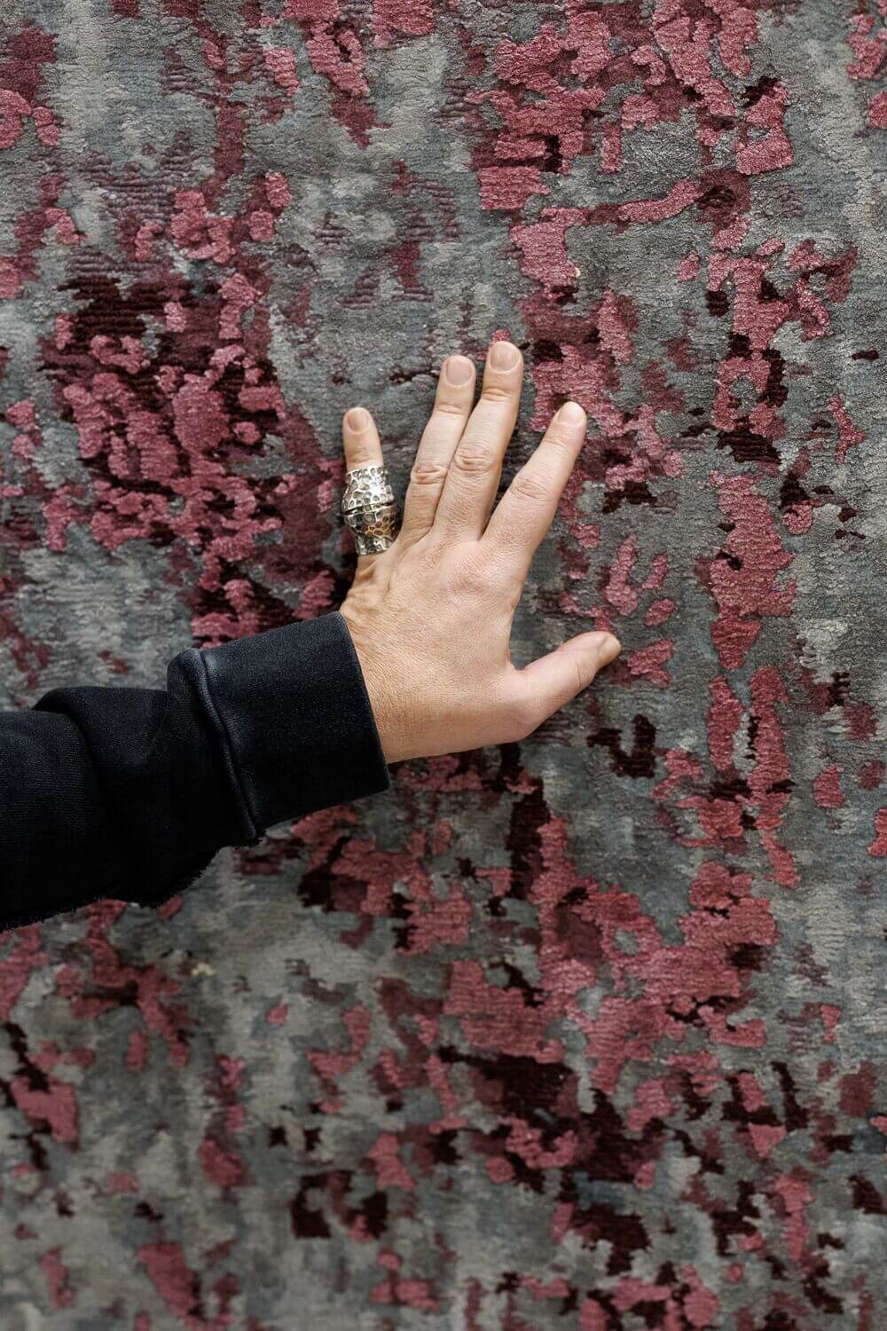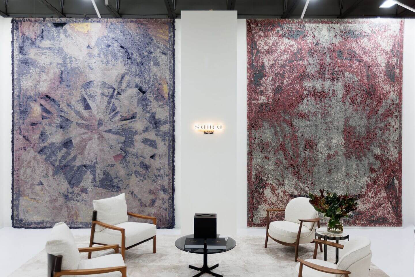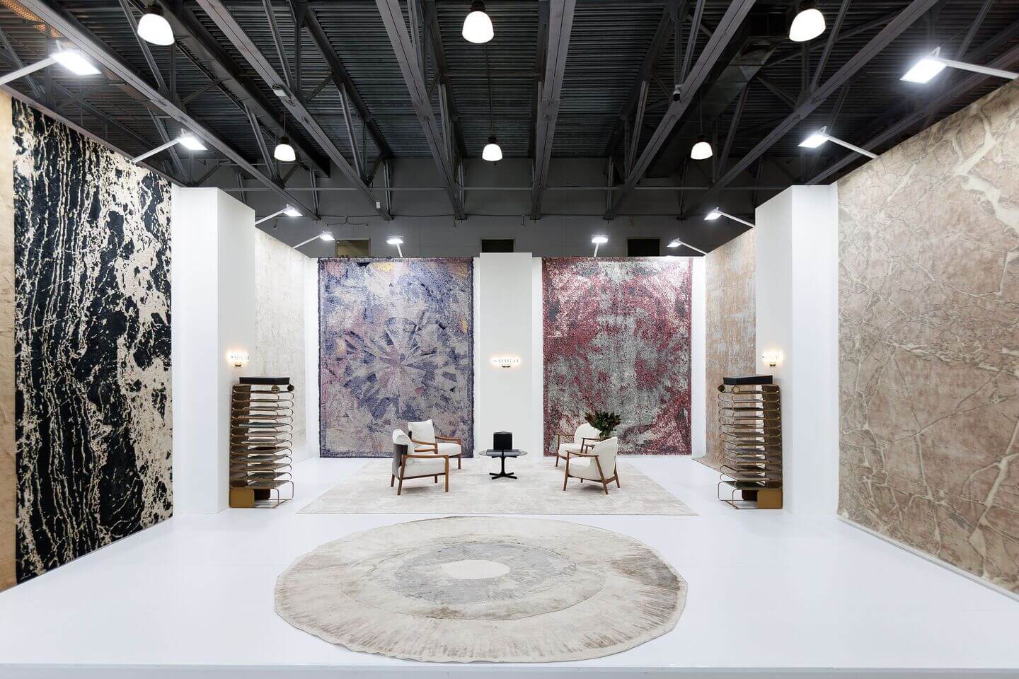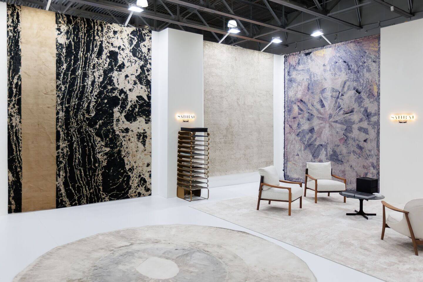 В экспозиции AURRUM также были представлены премиальные ковры Sahrai, известные исключительным качеством ручной работы и выразительными авторскими дизайнами. В центре экспозиции — ковры из коллекции Strati по дизайну дизайнера Майка Шилова.