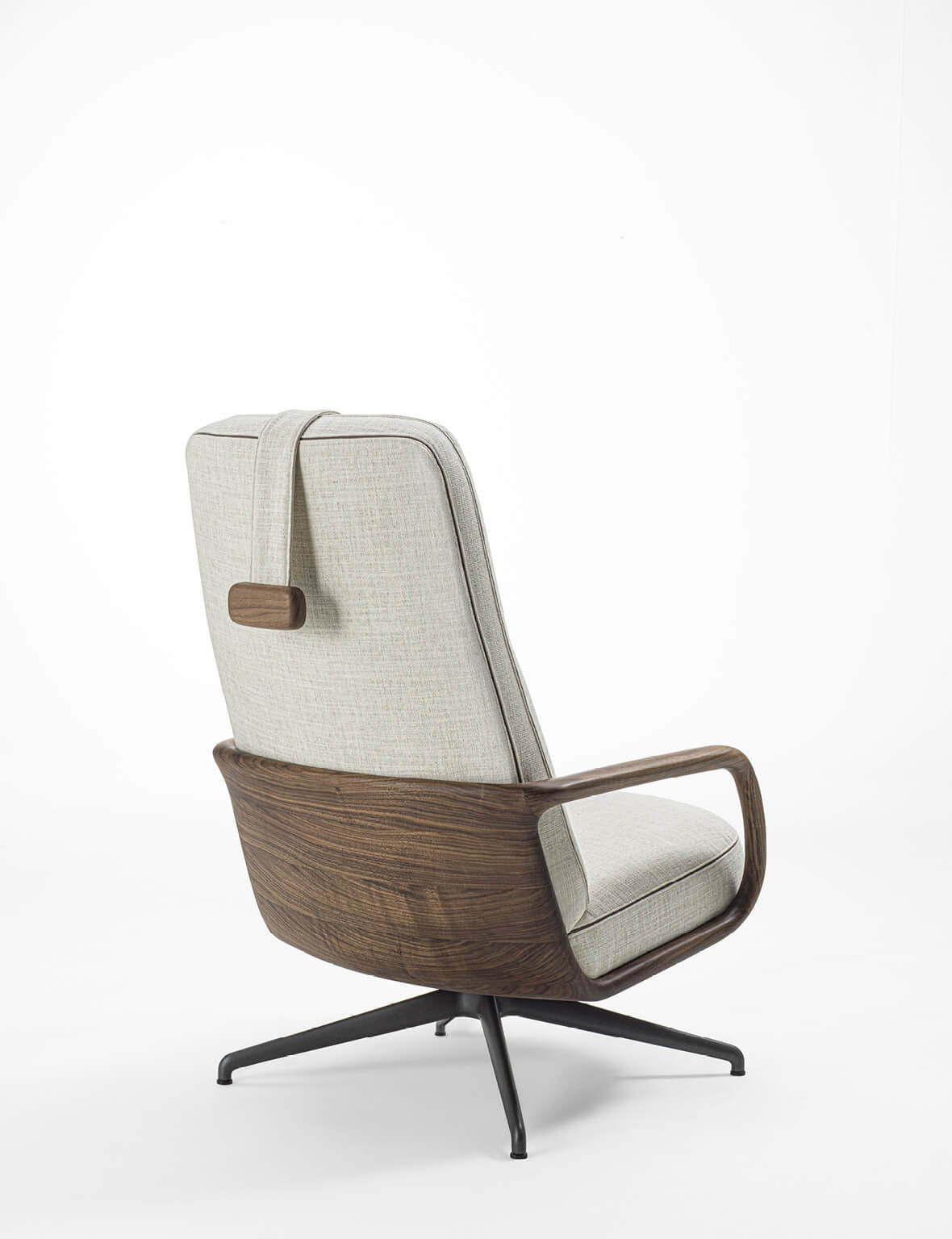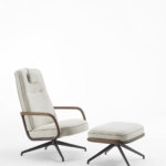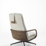 Кресло Cuna Lounge High Back от Porada, дизайн Эммануэль Галлина — поворотная модель с высокой спинкой, сочетающая комфорт и выразительную архитектуру формы. Кресло оснащено металлическим основанием с возвратным механизмом, обеспечивающим удобство использования и плавное возвращение в исходное положение.
