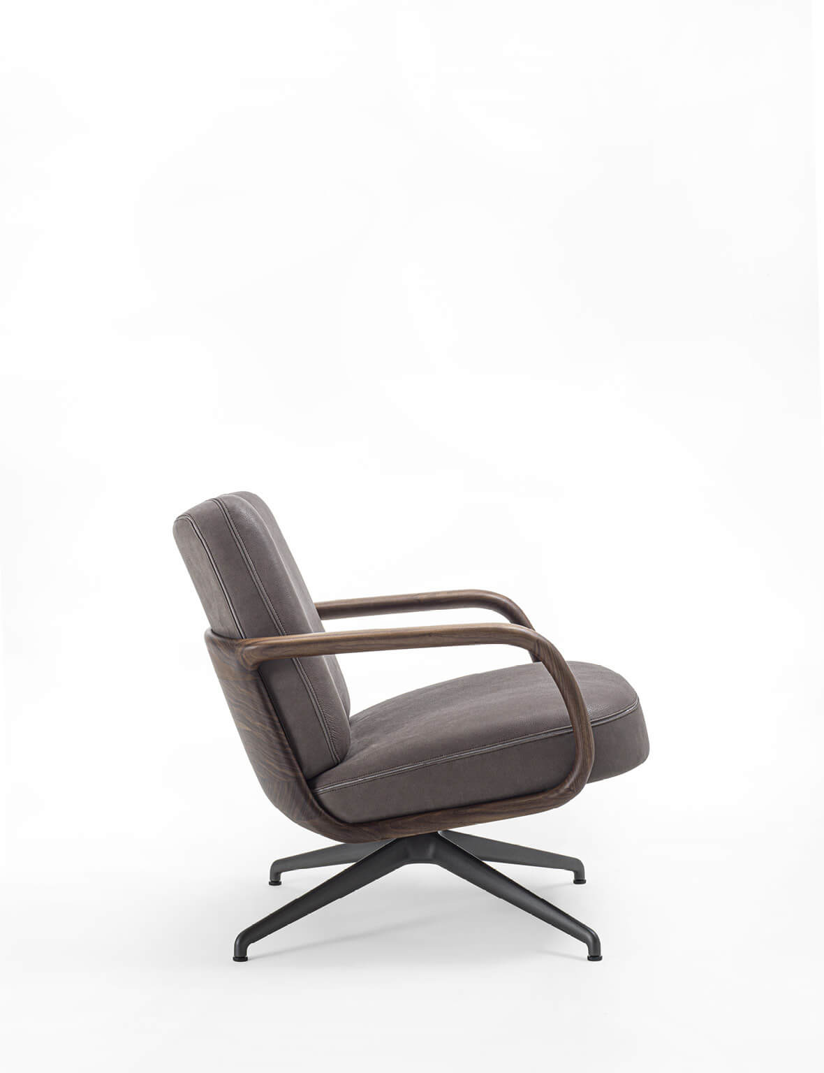 Кресло Cuna Lounge Low Back от Porada, дизайн Эммануэль Галлина — поворотная модель с лаконичной низкой спинкой, сочетающая комфорт и выразительную форму. Кресло оснащено металлическим основанием с возвратным механизмом, обеспечивающим плавное возвращение в исходное положение.