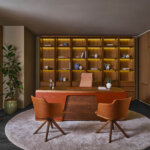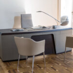 Письменный стол Flavio от Porada, дизайн Умберто Аснаго — представительский письменный стол, выполненный из массива ореха canaletta с выразительной отделкой и продуманной функциональной организацией.