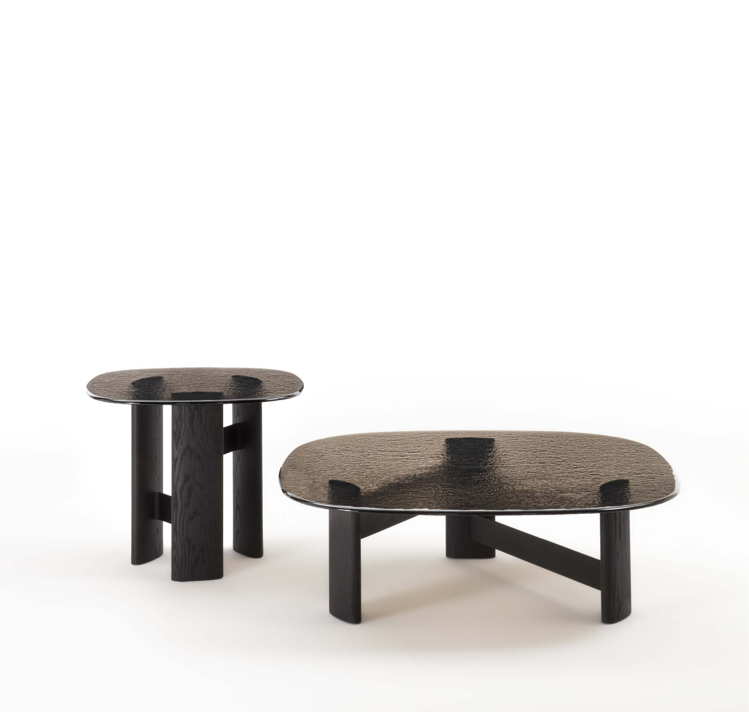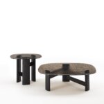 Журнальные столики Latch от Porada, разработанные дизайнерской студией Meneghello Paolelli, сочетают технологичность и эстетическую утончённость. Его ключевая особенность — термоформованная столешница из кристаллического стекла с отделкой Terre в тёплом бронзовом оттенке. Лёгкость конструкции подчёркнута трёхногим основанием из массива ясеня в различных вариантах отделки. Эллиптические ножки расположены под углом для визуальной динамики. Два соединительных элемента из чёрного брашированного металла усиливают контраст материалов. Latch доступен в двух вариантах размеров: 110 x 110 х H35 см и 65 х 65 x H53 см. Этот дизайнерский кофейный стол идеально впишется как в современную гостиную, так и в более классические интерьеры, сочетая функциональность с элегантностью.