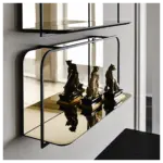 Полка Tresor от Cattelan Italia — дизайнерская модель от Paolo Cattelan с лаконичной геометрией и выразительным сочетанием материалов. Конструкция выполнена из прочной стали в отделке nero с тиснёным лаком, дополнена зеркальным стеклом в бронзовом оттенке, создающим эффект глубины и отражений.