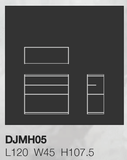 Размеры: ширина 120 см, глубина 45 см, высота 107,5 см. Подходит для гостиной, столовой или современного пространства хранения.